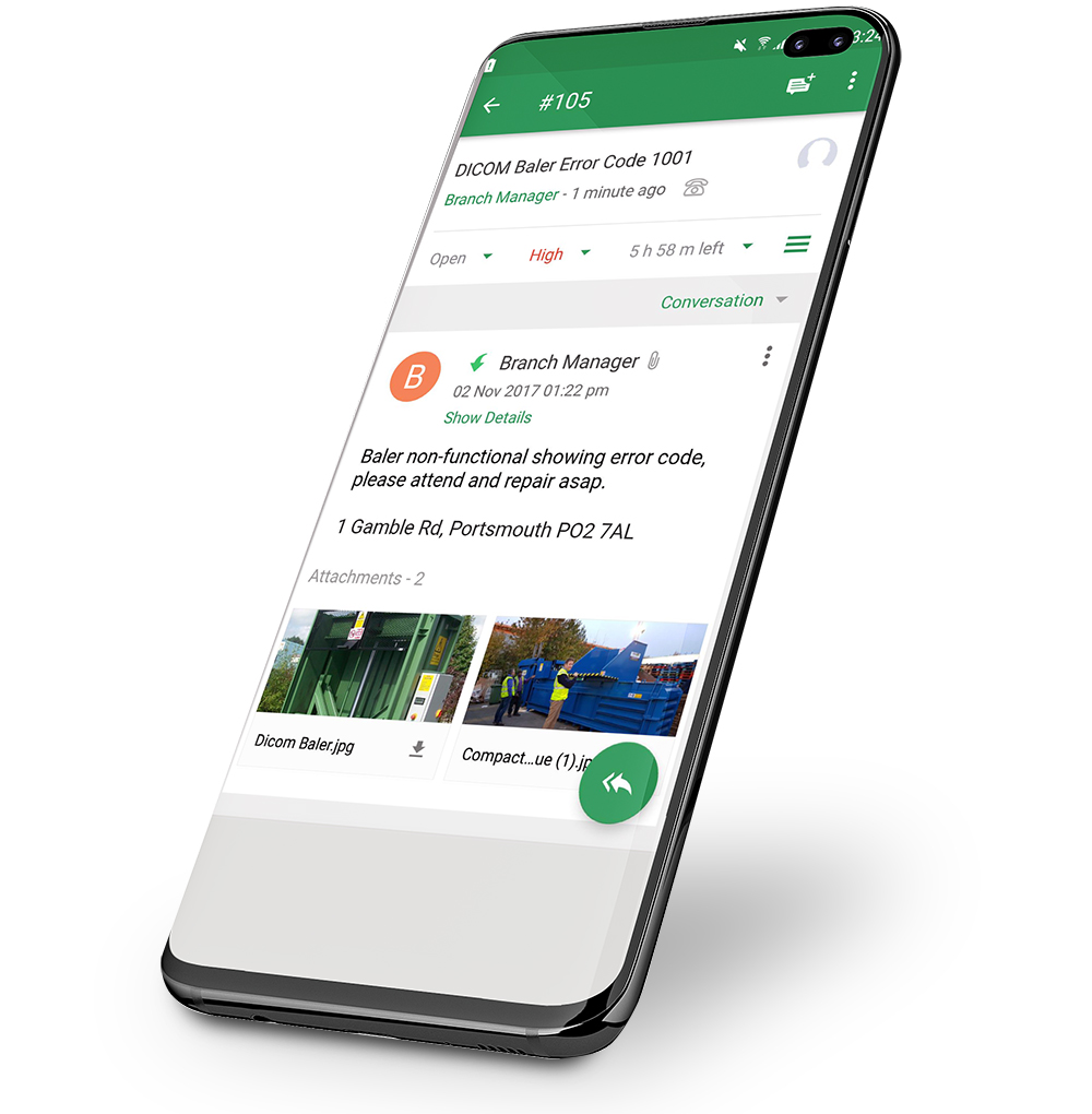 Our waste baler engineers receive tickets and alerts automatically on their mobile phones and devices which allow them to divert to a local breakdown or immediately respond without the input of office-based staff.