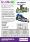 The Durapac CB-S Channel Baler is a high quality, continuous feed, fully automatic baler with a small footprint, large feed aperture and high press force that, dependent on motor/power choice, will process typically 3-6 tph of cardboard, paper, polythene film, etc.