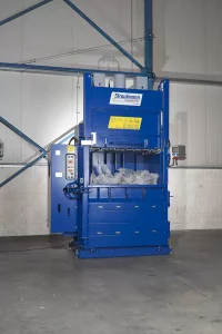 Strautmann’s German-built PP1208 is a truly industrial machine that heads the premium class of vertical baling presses worldwide. With its high pressure (58 or 70t options) and high penetration long-stroke versions, it makes dense, square-edged bales of even the most difficult to bale materials including paper, books, cardboard, film, PP bulk bags, cans, PET bottles, drums, kegs or electronic scrap.