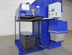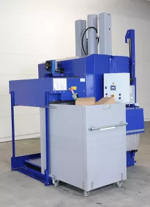 The AutoLoadBaler is used with its own “special design” carts which are positioned wherever cardboard is generated in your business. There is no need to flatten cardboard boxes before placing them in the carts. When full, simply push the cart into the baler’s loading position, press start, take an empty cart and go back to work, leaving the machine to automatically empty the cart for you.